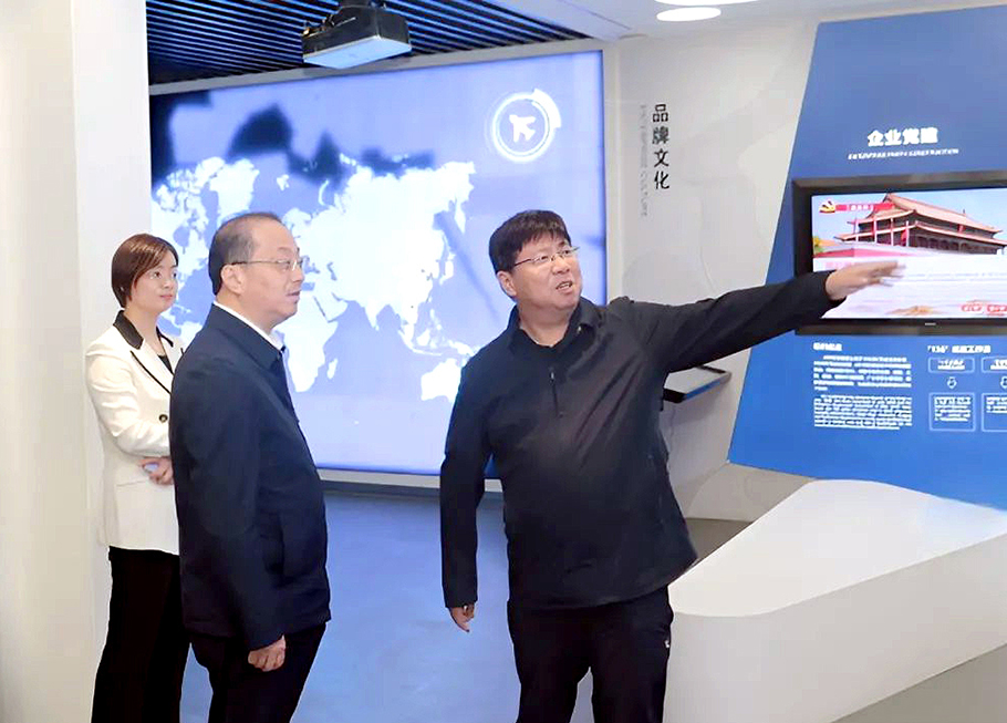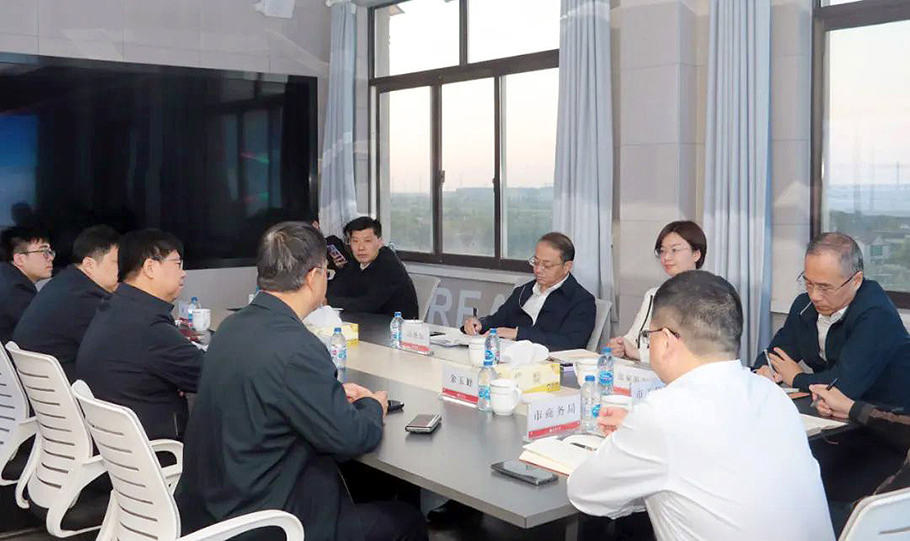 集團公司董事長朱劍峰就應對關稅貿易戰向顧曉東市長一行進行了匯報。集團下屬各板塊正在積極、快速優化產品結構和業務結構,努力開拓新市場。