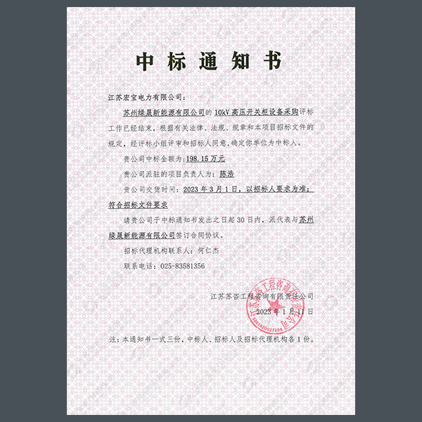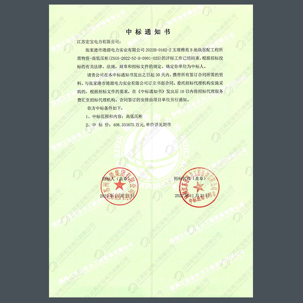 高壓柜中標(biāo)通知書
