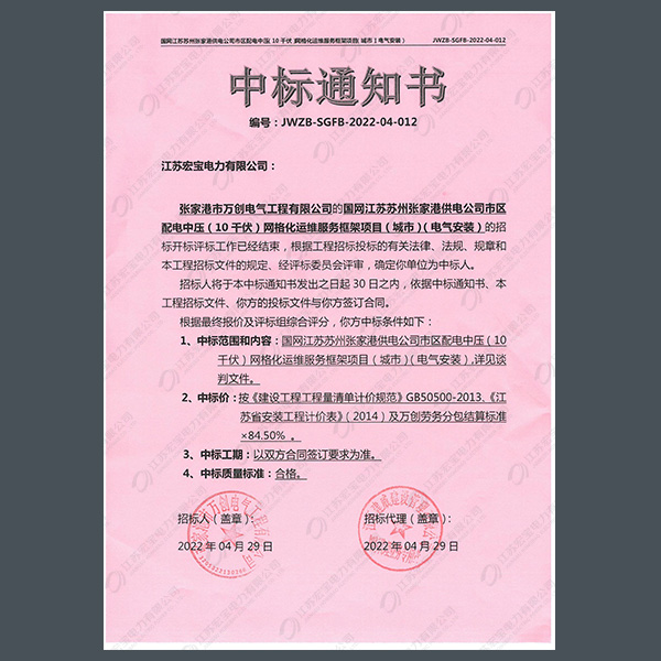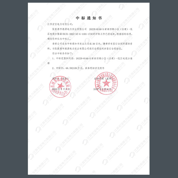 400V電纜分支箱中標(biāo)通知書